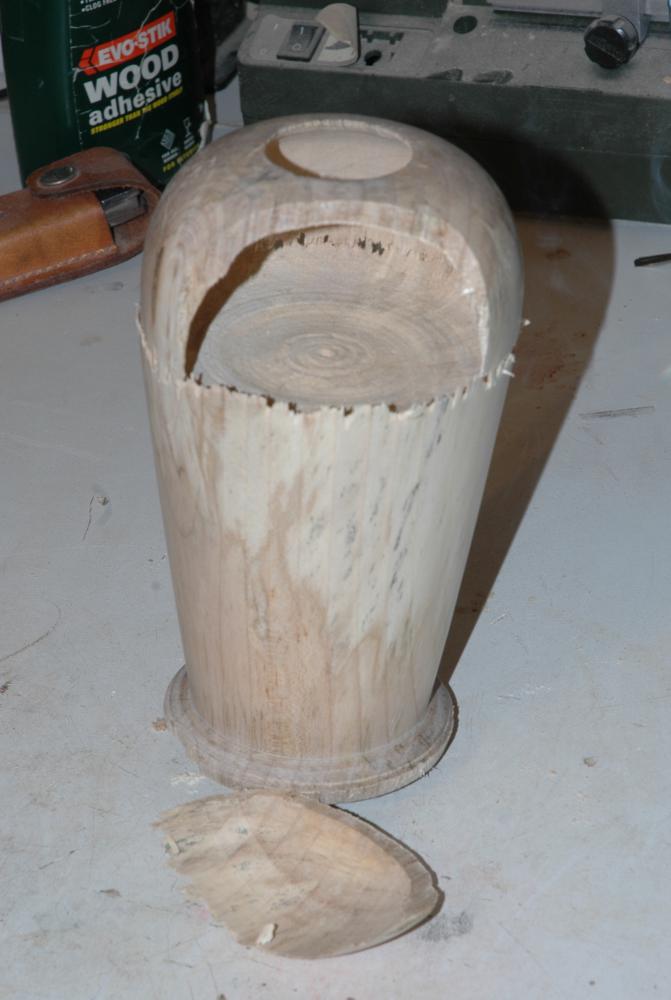 Initially I had 2 50W halogen bulbs in there, but I soon realized that this was going to burn me ears off. So I replaced them with LED lights, and now it works beautifully. I can even use it put lots of light onto my work bench on the other side of the workshop, where I do a lot of my decorating, carving and finishing.