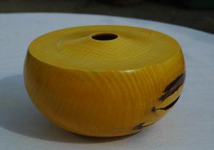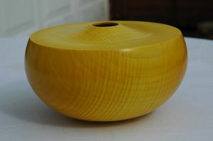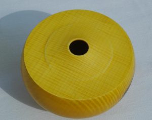 At any rate, my mother’s birthday is at the end of July, and this year we couldn’t go and see her, it just didn’t work out. So I made her a small box. The blanks were actually leftovers from a piece of commission work, where a fellow in Kidderminster wanted two identical holes cut into a slab of walnut, so he could display some ancient pieces of china. Due to the difficulties encountered there, both the blanks had a hole in the centre, which I needed to do something about. In the end I decided to use a small leftover piece of zebrano to make the handle on the lid and also a plug for the bottom.
