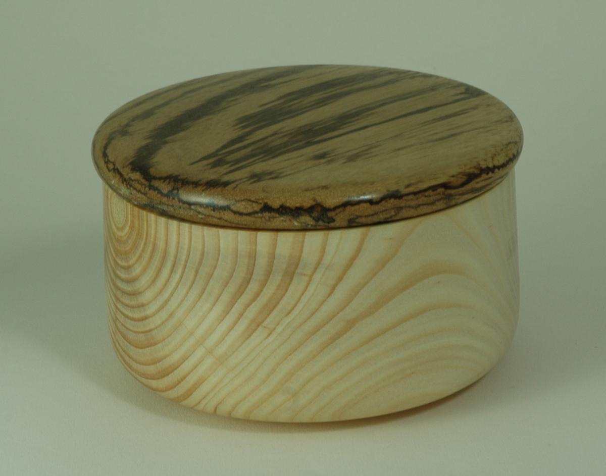 A simple box, which can be used as a cookie jar, or to store whatever needs storing. The bottom is made from monkeypuzzle, and the lid is zebrano.