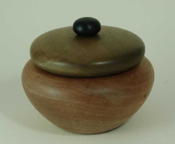 The lid is a piece of mahogany, from yet another haul of wood (see the windfall post on the blog), and the button on top is ebony, also from our friends.