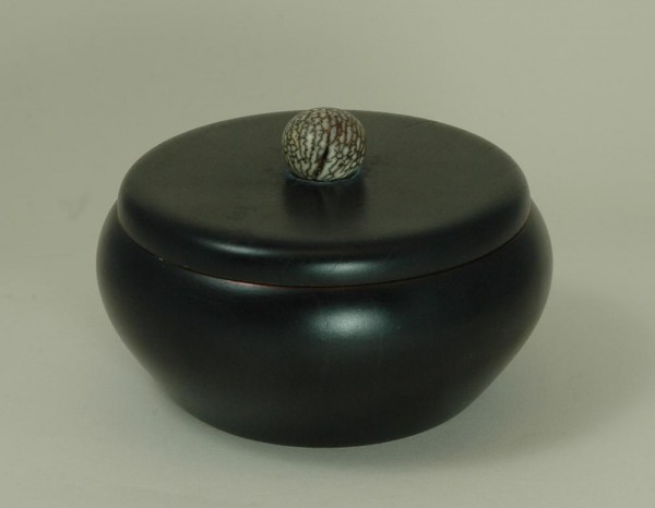 Made from one piece of cherry, ebonized on the outside and natural on the inside, with a knob made from supari nut (also called betel nut) to some interest. Could be used as a keepsake or a small jewellery box.
